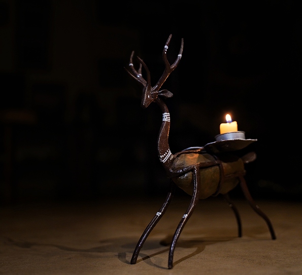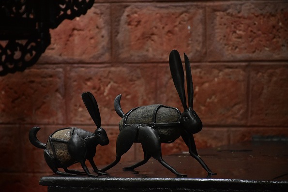 Taking inspiration from the traditional iron craft of Bastar, the iron craft here evolves into many new avatars! Its combination with other mediums such as wood, stone, as part of a painting on canvas, or even infusion with metals such as brass and copper, each piece of iron craft at Devrai reflects the coming together of imagination, inspiration and the skilled hand of an age-old tradition.