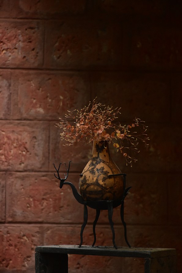 There has been a metamorphosis in the traditional dried gourd craft at Devrai. Intricate patterns are hand-etched onto the Tumbas to create lamps, puppets, flower vases, & much more.