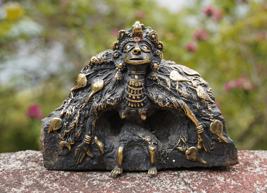 At Devrai there is constant exploration and experimentation, both with the form and the content, the medium and the story that is retold. The creation of the Dancing Nandi illustrates this with precision. Unlike the Nandi icons made either in stone or metal, the Rock Dhokra Dancing Nandi showcases the fusion of the two mediums. Moreover, the Nandi that has been sitting in the same posture looking up to Shiva now starts dancing with him! We have been creating Dancing Nandis in various postures that depict different moods and situations. The Dancing Nandi accompanies the iconic Tandav of Shiva. He also dances in a joyous frenzy with Gangadhar Shiva, who’s taking the massive flow of the river Ganga cascading down the skies into his matted locks. The stories reinterpreted highlight the ecological wisdom and values inherent in our cultural heritage. Shiva’a Tandav is the cosmic dance in rhythm with “rta” or the cosmic cycle that sustains the Universe. The matted locks of Shiva, what are they if not the trees that take the brunt of the rain falling from the skies, and lower it gently into the earth sustaining all living beings. The trees become the conduits to channelize the raw energy of the swirling galaxies (Akash Ganga) into the ground.