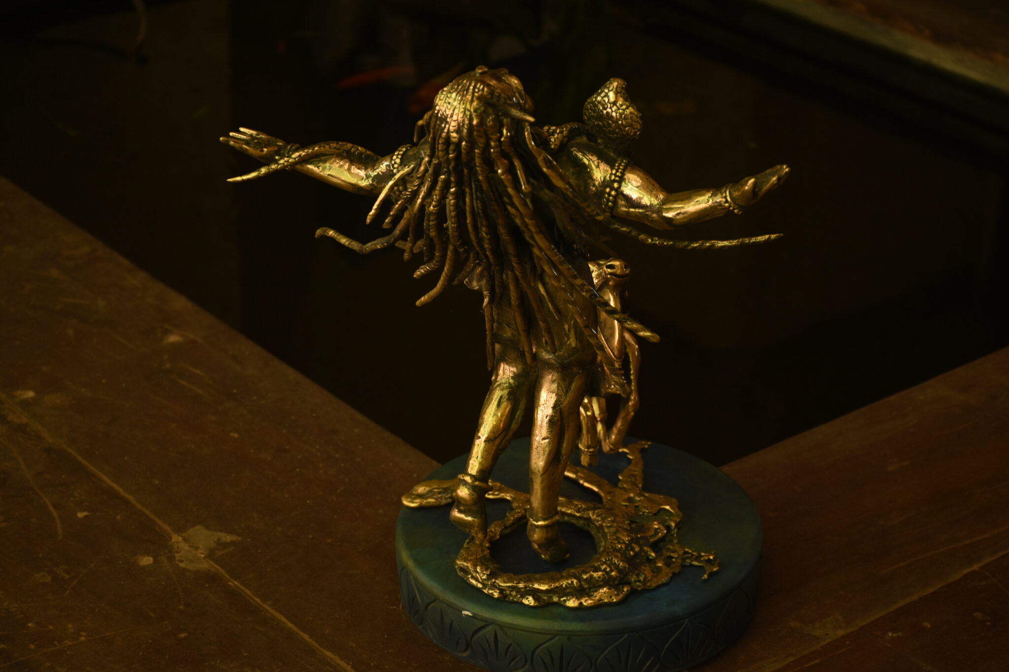 The intoxicating dance of Shiva. as he takes on the mighty river Ganga, cascading down the skies, into his matted locks. Nandi, who has been sitting in a meditative pose for centuries pleads with Shiva, and joins him in his cosmic dance.
