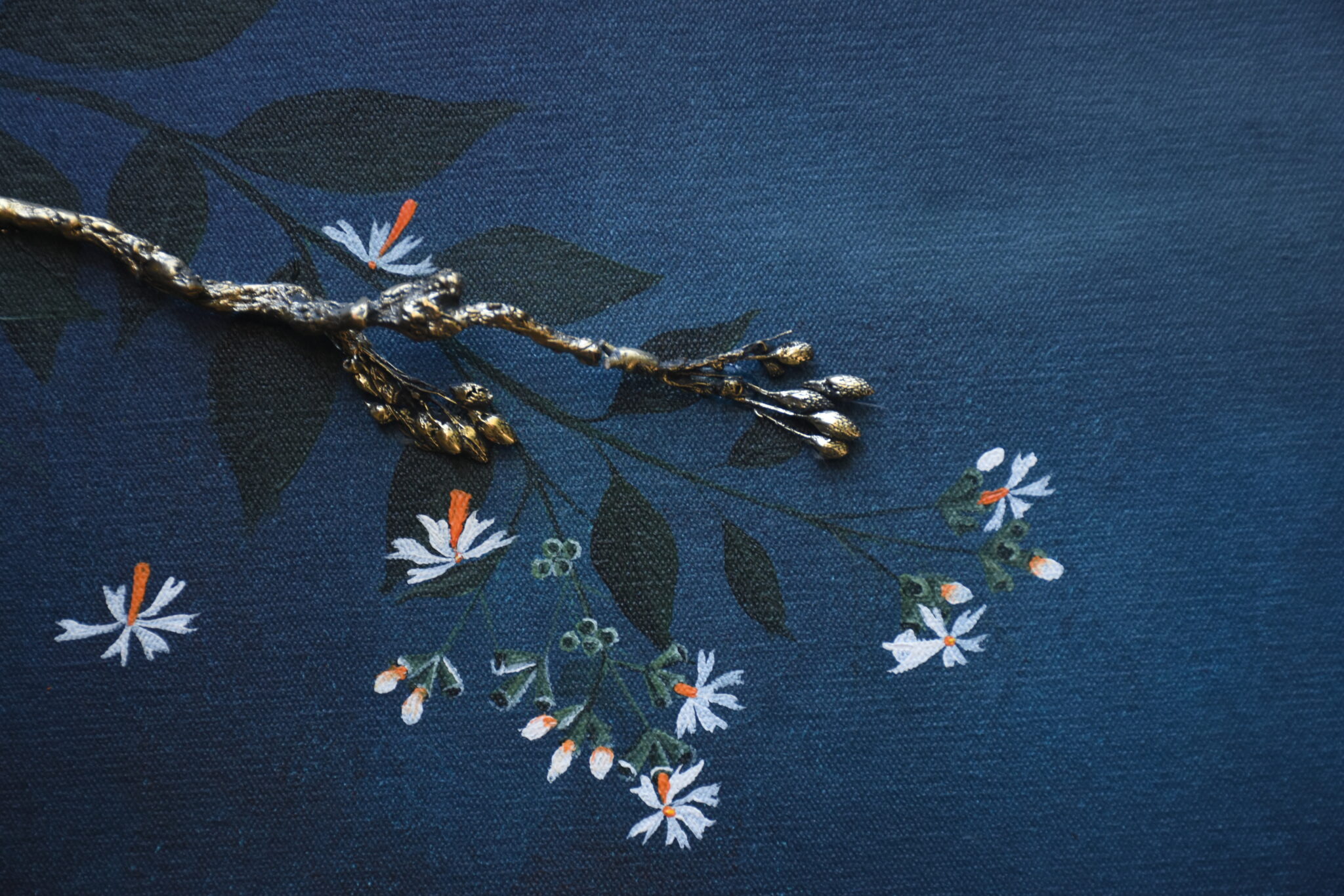 The branches are made casting actual twigs of wood in metal using Organic Casting (the process of casting organic material like leaves, flowers, twigs etc in brass to replicate the patterns and textures in nature).