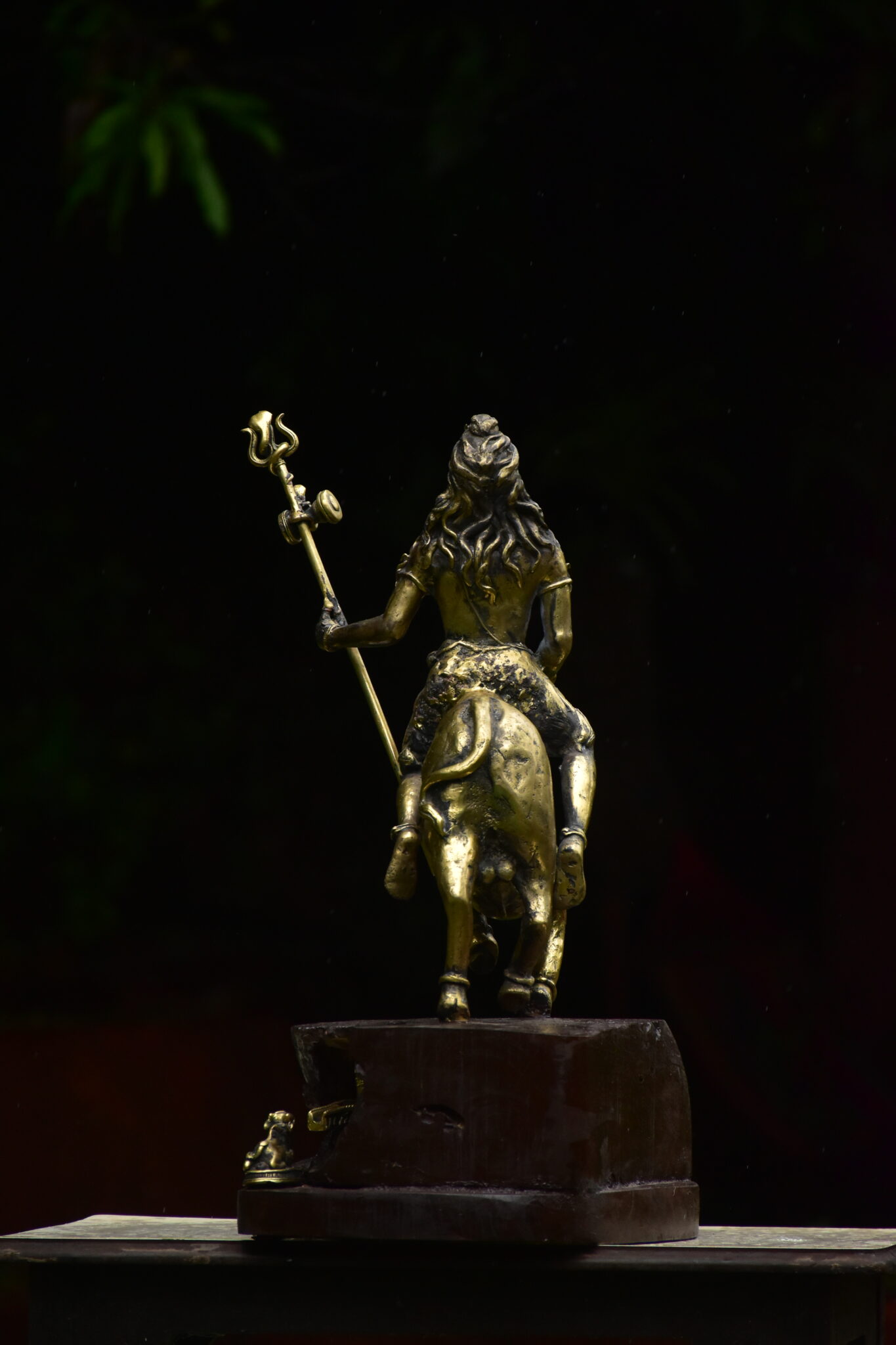 Both Lord Shiva and Nandi are made in stone and brass (Rock Dhokra process), while the base is made of wood. The small Nandi and Shiv Ling on the base are also made in brass (Dhokra process).