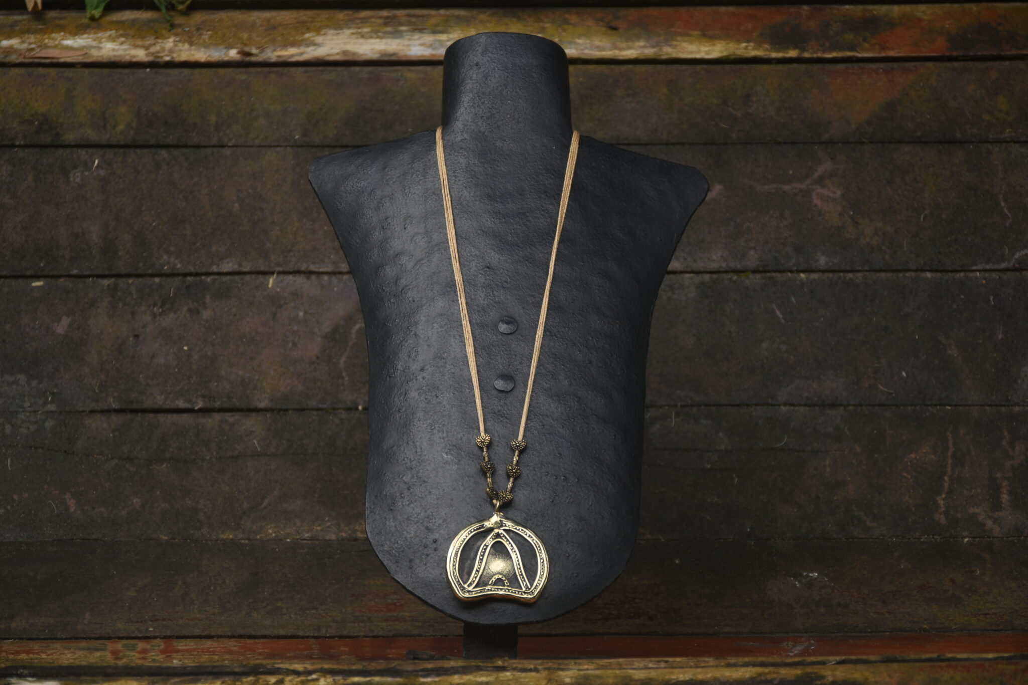 Even the smallest pendant made at Devrai goes through a long journey, and is worked upon at different stages by various members of our team. This is a piece from our terracotta and brass collection, in which the two materials are seamlessly fused in a unified whole. After the pendant is made, the threads are added, decorated with a mix of beads or semi-precious stones to complete the piece. The length of the threads is adjustable.