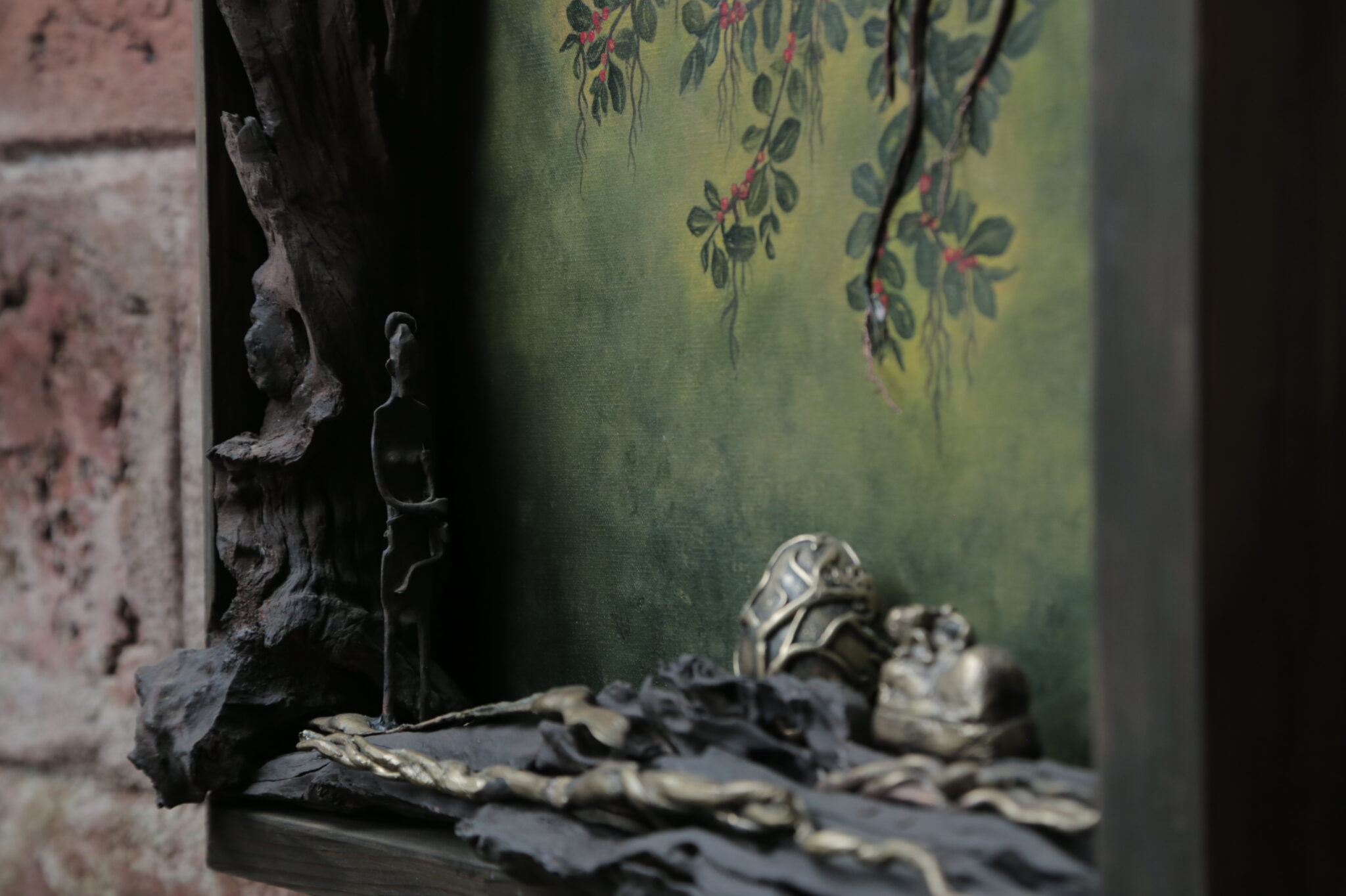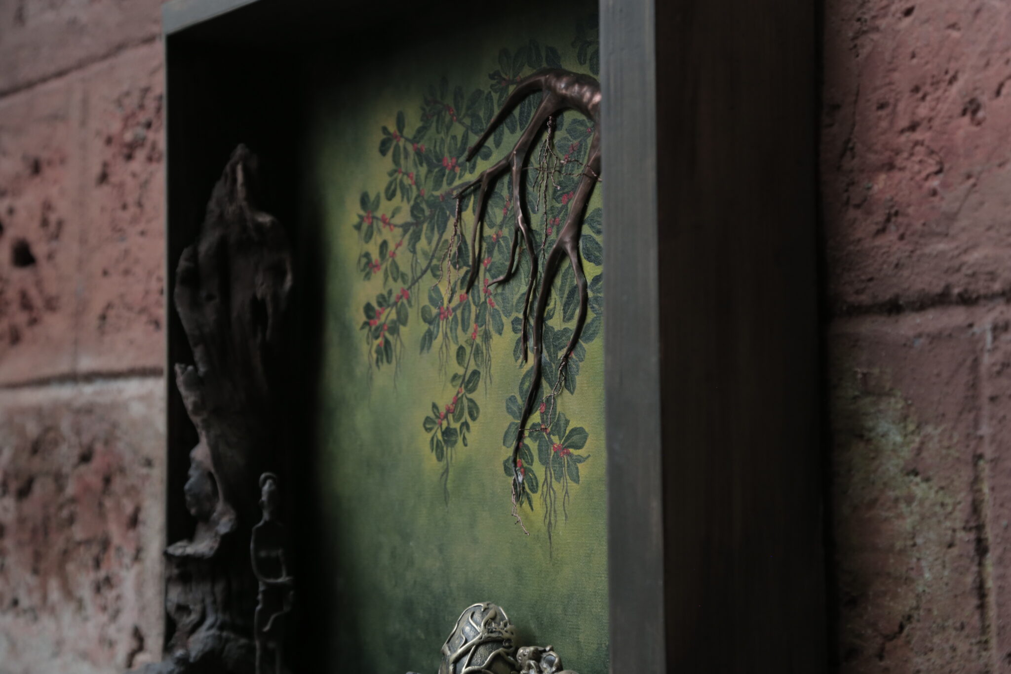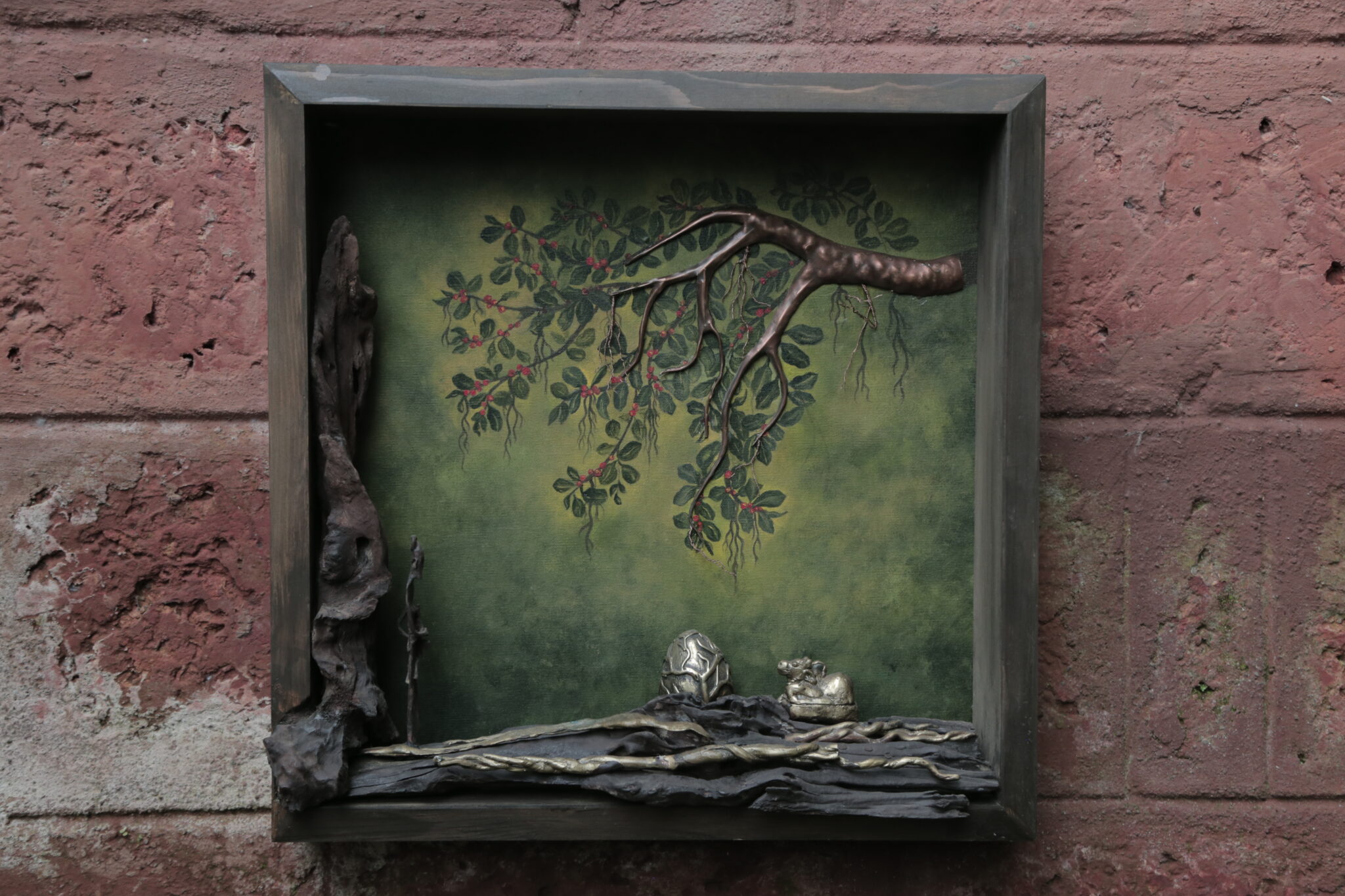 Materials: Acrylic Paint on Canvas, Copper, Brass, Iron, Driftwood, Wooden Frame
