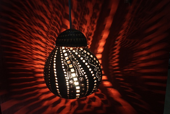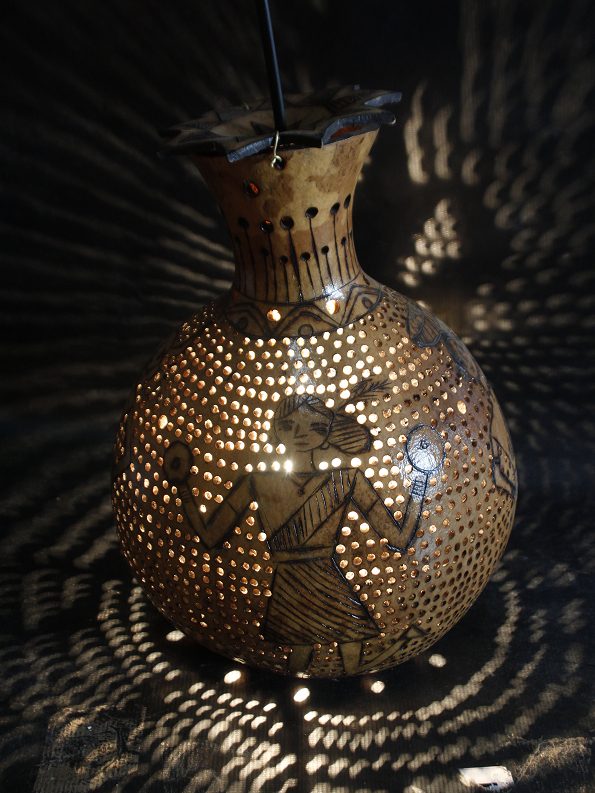 There has been a metamorphosis in the traditional dried gourd craft at Devrai. We have lamps with different design patterns such as Mandala art, nature inspired motifs, stories and myths etched on the surface. Tumba has been put to many other uses as well – we have flower vases, the bigger ones have even turned into wine and beer casks with taps! Draped in fabric, Tumbas have even been turned into puppets. As lamps, they tell stories in mesmerising patterns of light and shadow, but as puppets, they transport us into a different world altogether. The patterns are etched onto the Tumba with red-hot iron tools, requiring immense hand control and precision at each step.